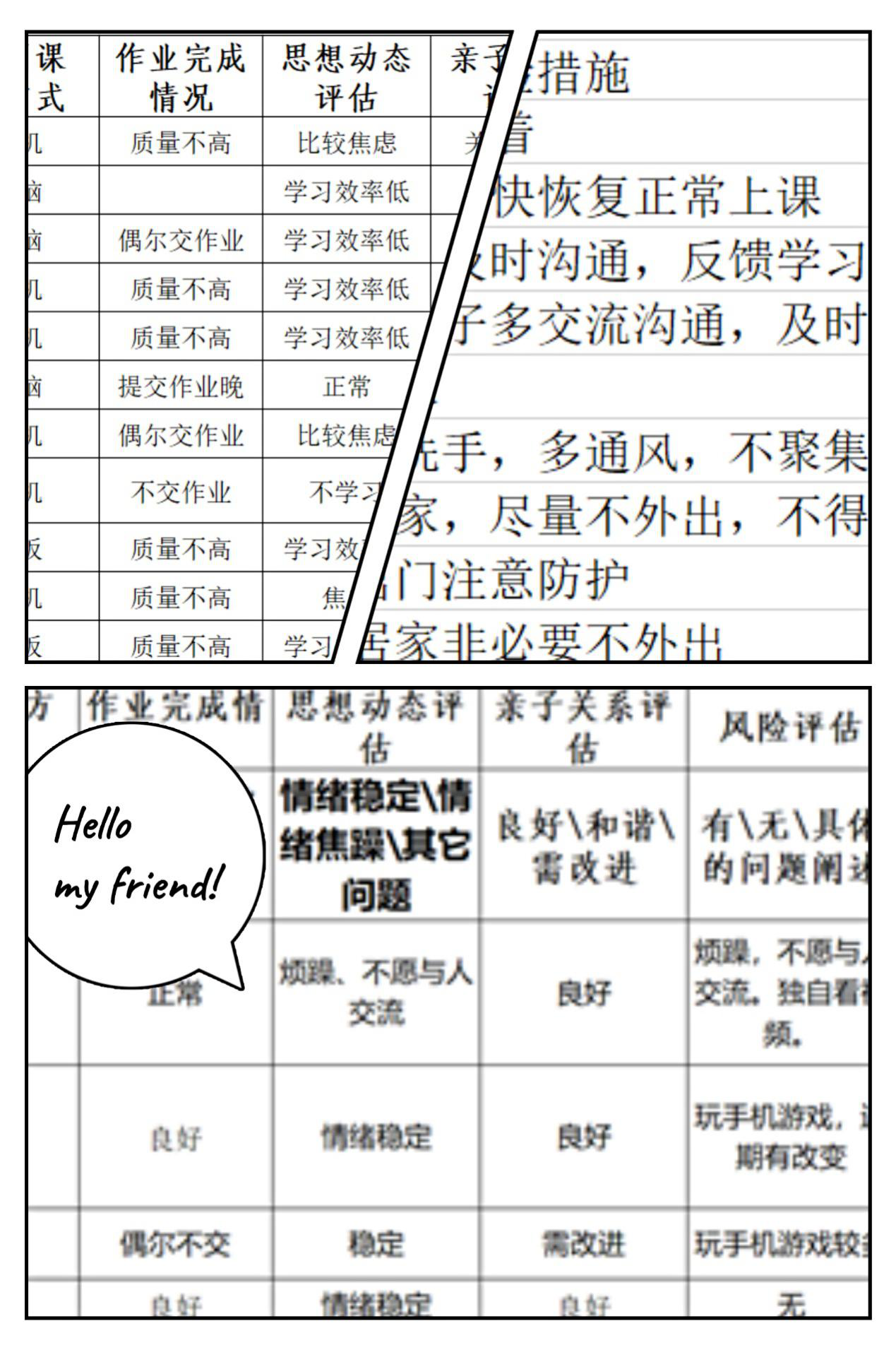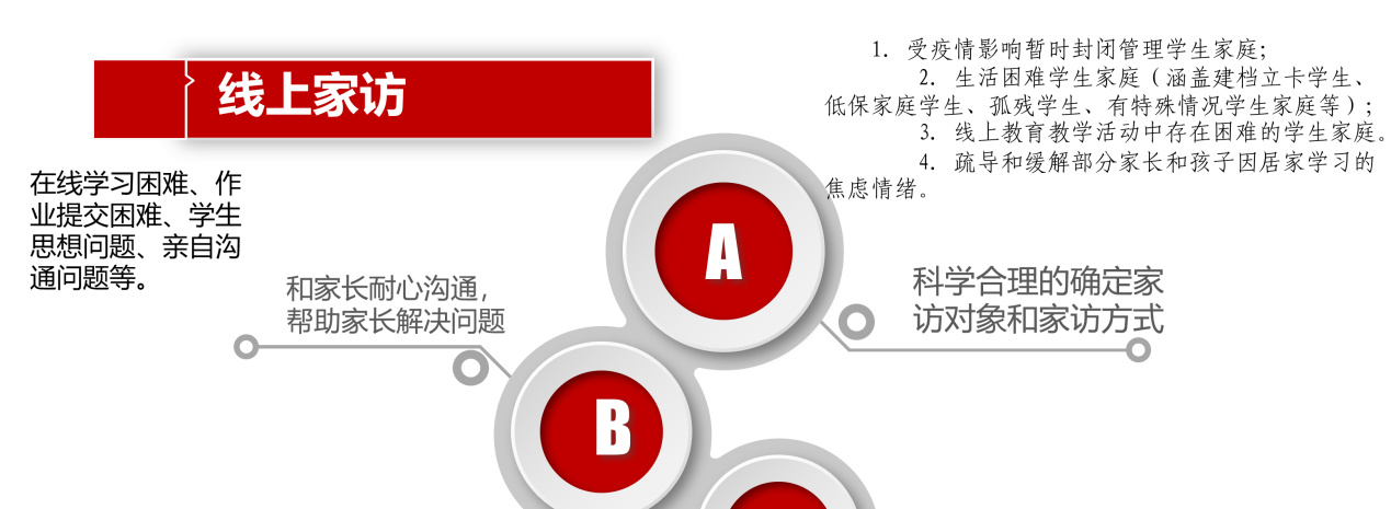 建立台账的同时,班主任和任课教师分工,对线上学习中出现的问题和学生或家长中的困难,一一落实,通过电话、短信、语音或视频的方式积极开展线上家访,争取做到尽早发现问题,解决问题,切实帮助家长解决学生居家学习中遇到的困难。