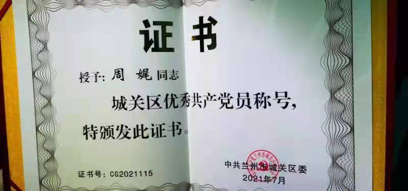 作为一名共产党员,她以自我独特、卓有成效的教学管理在平凡的教学工作岗位上体现了党员的先进性作用。从事教育教学工作的29年时间里,周娓始终把“学高为师,身正为范”这一教育工作者的指导思想作为自己工作生活的行动指南,树德育人、钻研业务,为学生的健康成长播撒充满爱心的汗水,不断提高专业教学水平,努力使自己成为学生成长道路上的良师益友。任教期间,连续多年获校“优秀教师”称号;并且先后获得“兰州市教学新秀”“兰州市骨干教师”、“兰州市教学能手”“兰州市十佳辅导员”“城关区教学新秀”“城关区骨干教师”“城关区十佳辅导员”“城关区优秀大队辅导员”等多项优秀称号,并于2004年获甘肃省“省级教学骨干”称号; 2011年获校优秀共产党员称号;组织辅导的各项艺术展演活动在省、市、区各级各类文艺比赛中,也先后获得多个一等奖、二等奖的好成绩,本人也多次荣获优秀指导教师、优秀指挥等称号。